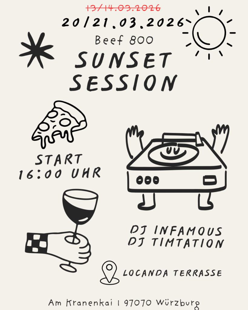Am 20. und 21. März 2026 erwartet euch bei Beef 800 eine entspannte Auszeit in besonderer Atmosphäre. Bei unserer Sunset Session könnt ihr den Tag mit guten Drinks, lockerer Stimmung und passender Musik ausklingen lassen.